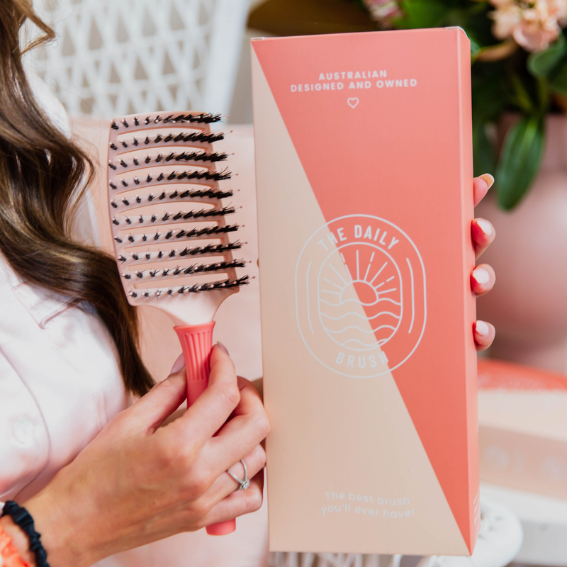 One stroke of the Daily Brush and you'll be obsessed. The Daily Brush uses the latest dual bristle technology with a mix of natural boar bristle and synthetic. An ergonomic designed handle making styling and brushing a breeze. Contoured paddle brush design will wrap around your head massaging and detangling each stroke. This is a sensory and quick detangling brush, effective for fine to thick and textured hair without breakage causing split ends. Suited to all hairtypes.